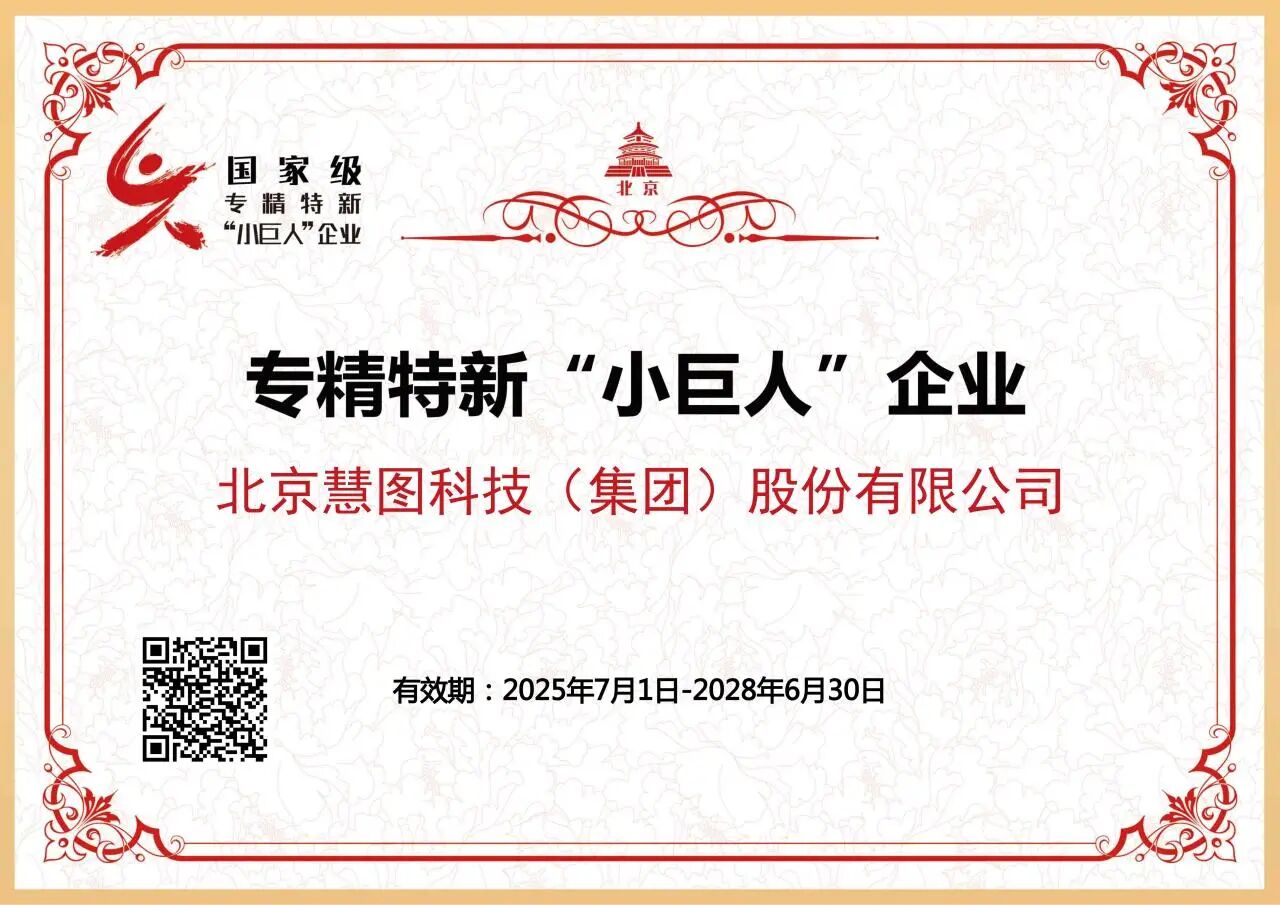 專精特新“小巨人”企業(yè)是國(guó)家為鼓勵(lì)中小企業(yè)實(shí)現(xiàn)專業(yè)化、精細(xì)化、特色化、新穎化發(fā)展而設(shè)立的榮譽(yù)稱號(hào)。此次評(píng)選,慧圖科技憑借其在科技研發(fā)、產(chǎn)品創(chuàng)新、市場(chǎng)開拓等方面的突出表現(xiàn),成功入選,有效期為2025年7月1日至2028年6月30日。