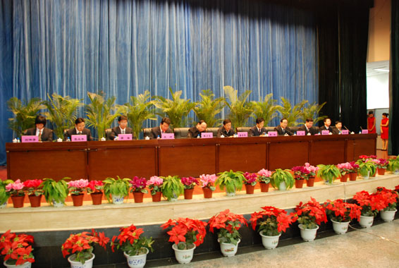 參加大會(huì)的公司及市委領(lǐng)導(dǎo)在主席臺(tái)就坐