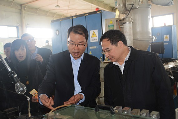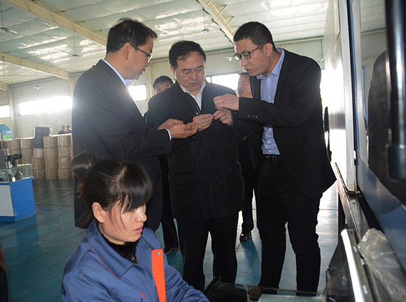 傅小鋒副廳長一行首先來到大禹節(jié)水集團(tuán)展廳,從集團(tuán)發(fā)展歷程、科技創(chuàng)新、企業(yè)文化、榮譽資質(zhì)、國際交流與考察等方面進(jìn)行了全面了解,大禹節(jié)水集團(tuán)發(fā)展中取得各項喜人成果獲得了傅小鋒副廳長一行的肯定和贊許。隨后,傅小鋒副廳長一行深入大禹節(jié)水(酒泉)有限公司滴灌生產(chǎn)車間一線實地調(diào)研,邊走邊看,邊聽邊問,了解企業(yè)生產(chǎn)經(jīng)營及科技創(chuàng)新和科研成果推廣應(yīng)用等情況,大禹節(jié)水集團(tuán)副總裁徐希彬就公司產(chǎn)品研發(fā)及生產(chǎn)經(jīng)營等基本情況向傅小鋒副廳長一行進(jìn)行了匯報介紹。
