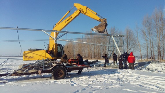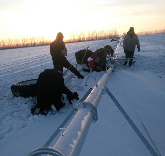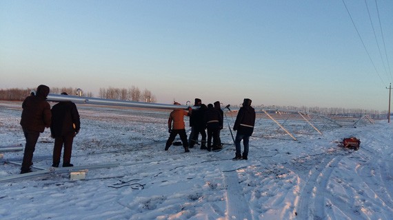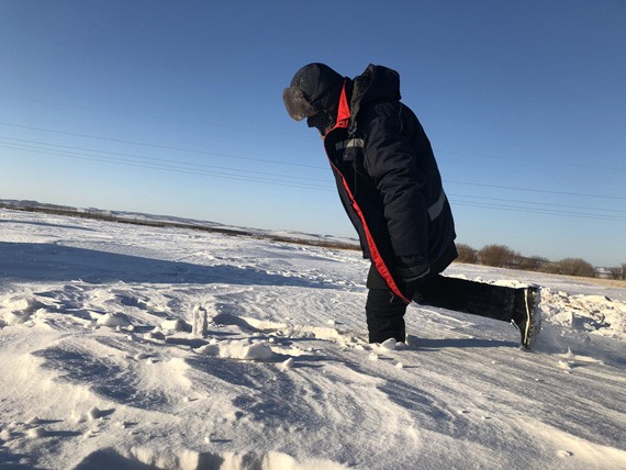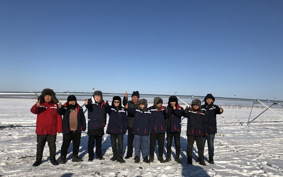 呼倫貝爾已是冰封雪蓋、天寒地凍,最低氣溫已至零下三十幾度,在牙克石農(nóng)場(chǎng)的田間,一座活動(dòng)板房耀眼的矗立在冰天雪地,里面住著堅(jiān)守在牙克石項(xiàng)目的大禹節(jié)水工程施工人員。