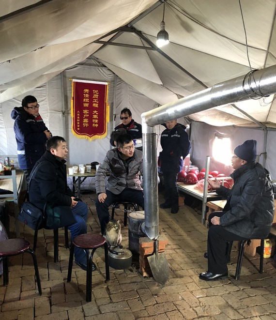 每天早晨,伴隨著陣陣寒氣,項(xiàng)目施工人員用從遠(yuǎn)處打來(lái)的帶著冰碴的水,草草的洗漱過(guò)后就開(kāi)始了新的一天的工作。從駐地到施工現(xiàn)場(chǎng),多為過(guò)膝深的積雪,就是這樣的路途,項(xiàng)目施工人員每天要走好幾里。他們認(rèn)真檢查每個(gè)設(shè)備的零部件,嚴(yán)格每一道施工程序,進(jìn)行設(shè)備安裝、管道檢查。他們心里只有一個(gè)念頭:白天一定要把工作做細(xì)、做扎實(shí),保質(zhì)保量、保進(jìn)度。白天按照施工進(jìn)度,完成施工任務(wù),才能享受一個(gè)“美好”的夜晚,因?yàn)椴挥迷谝估锛影?,想象一下這樣的天氣在夜里加班是個(gè)怎么樣的滋味,而這樣的滋味他們也是常常要品嘗的。