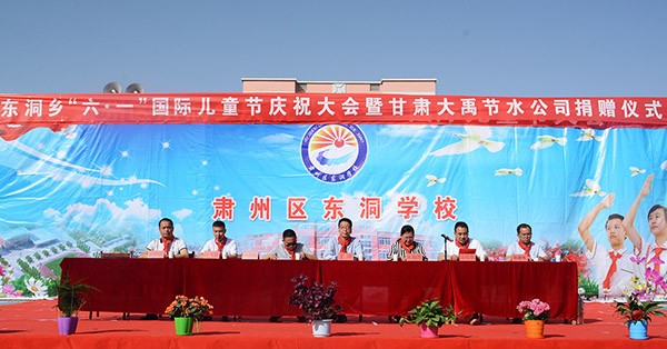 六月是花朵爭艷綻放的季節(jié),也是孩子們喜歡的"兒童節(jié)"到來的季節(jié)。6月1日上午,在第68個(gè)國際兒童節(jié)來臨之際,大禹節(jié)水集團(tuán)公司黨委書記、副董事長王沖,總裁助理、團(tuán)委書記巨飛雷一行,帶著大禹人的溫暖來到甘肅省酒泉市肅州區(qū)東洞學(xué)校,為該校捐贈了價(jià)值2萬元的辦公必備用品,與全校師生共度六一兒童節(jié)。東洞鄉(xiāng)黨委書記吳海霞,黨委副書記郎海斌,東洞學(xué)區(qū)主任、東洞學(xué)校校長運(yùn)啟業(yè),副校長趙建偉、秦剛國出席捐贈儀式。東洞學(xué)校校長運(yùn)啟業(yè)、大禹節(jié)水集團(tuán)公司黨委書記王沖、東洞鄉(xiāng)黨委書記吳海霞等領(lǐng)導(dǎo)先后在捐贈儀式上致辭。