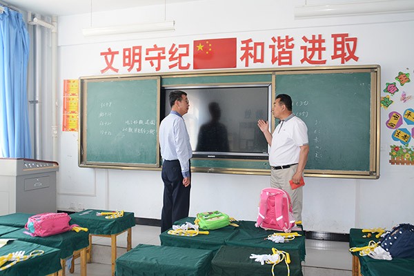 捐贈儀式結(jié)束后,大禹節(jié)水集團(tuán)公司黨委書記、副董事長王沖,總裁助理、團(tuán)委書記巨飛雷一行在東洞鄉(xiāng)黨委書記吳海霞,黨委副書記郎海斌,東洞學(xué)區(qū)主任、東洞學(xué)校校長運(yùn)啟業(yè)等領(lǐng)導(dǎo)陪同下還參觀了東洞學(xué)?;A(chǔ)設(shè)施設(shè)備。