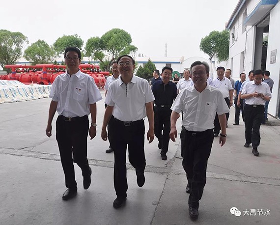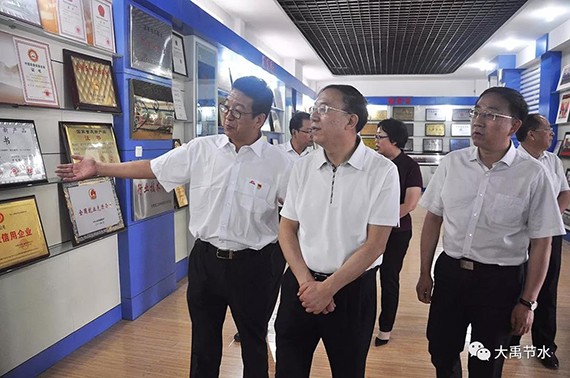 在大禹節(jié)水集團(tuán)公司綜合展廳,李沛興副省長一行從企業(yè)發(fā)展歷程、基層黨建、榮譽(yù)資質(zhì)等方面對大禹節(jié)水集團(tuán)進(jìn)行了全面了解,王沖就公司基本情況進(jìn)行了匯報介紹。在聽到公司黨委被中共中央授予"全國先進(jìn)基層黨組織"光榮稱號時,李沛興副省長對大禹節(jié)水集團(tuán)高度重視黨建工作,不斷完善基層黨組織體系建設(shè),增強(qiáng)基層黨組織的凝聚力、戰(zhàn)斗力方面取得的成績給予充分肯定。