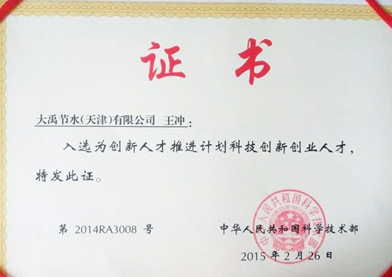大禹節(jié)水集團(tuán)公司黨委書(shū)記、大禹節(jié)水(天津)有限公司董事長(zhǎng)王沖帶領(lǐng)團(tuán)隊(duì)不斷開(kāi)拓國(guó)內(nèi)、國(guó)際市場(chǎng),為企業(yè)贏得了諸多殊榮,帶領(lǐng)公司經(jīng)營(yíng)業(yè)績(jī)保持連年增長(zhǎng)。依托公司先后建成了重點(diǎn)實(shí)驗(yàn)室,成立了"大禹節(jié)水灌溉技術(shù)研究院","院士專家工作站",被認(rèn)定為科技"小巨人"領(lǐng)軍企業(yè),產(chǎn)品被列入天津市殺手锏產(chǎn)品目錄。曾參與完成國(guó)家"863"計(jì)劃、"948"計(jì)劃、星火計(jì)劃、火炬計(jì)劃等10余項(xiàng)國(guó)家及省部級(jí)重大項(xiàng)目,先后在國(guó)內(nèi)級(jí)刊物和學(xué)術(shù)會(huì)議上發(fā)表相關(guān)專業(yè)和學(xué)術(shù)論文十余篇。完成"內(nèi)鑲貼片地埋式灌水器"等40多項(xiàng)科技成果和自主知識(shí)產(chǎn)權(quán)專利技術(shù),開(kāi)發(fā)成功國(guó)家重點(diǎn)新產(chǎn)品3個(gè),取得國(guó)家專利50多項(xiàng),科技成果13項(xiàng)。主持研發(fā)的地埋式滴灌,解決了目前地埋滴灌存在根系入侵和負(fù)壓吸泥的國(guó)際性難題,填補(bǔ)了國(guó)內(nèi)國(guó)際空白。2016年1月8日,由王沖為第四完成人領(lǐng)銜的公司科研團(tuán)隊(duì)與中國(guó)水利水電科學(xué)研究院、華北水利水電大學(xué)、水利部科技推廣中心、中國(guó)農(nóng)業(yè)科學(xué)院農(nóng)田灌溉研究所、大禹節(jié)水(天津)有限公司合作研發(fā)項(xiàng)目"精量滴灌關(guān)鍵技術(shù)與產(chǎn)品研發(fā)及應(yīng)用"榮獲國(guó)家科技進(jìn)步二等獎(jiǎng)。2015年被國(guó)家科技部評(píng)為"創(chuàng)新人才推進(jìn)計(jì)劃科技創(chuàng)新創(chuàng)業(yè)人才"。2017年,入選"萬(wàn)人計(jì)劃"國(guó)家高層次人才特殊支持計(jì)劃領(lǐng)軍人才。完成的"噴、微灌水肥一體化精量調(diào)控技術(shù)與規(guī)?;瘧?yīng)用"榮獲2018年大禹水利科學(xué)技術(shù)一等獎(jiǎng)。