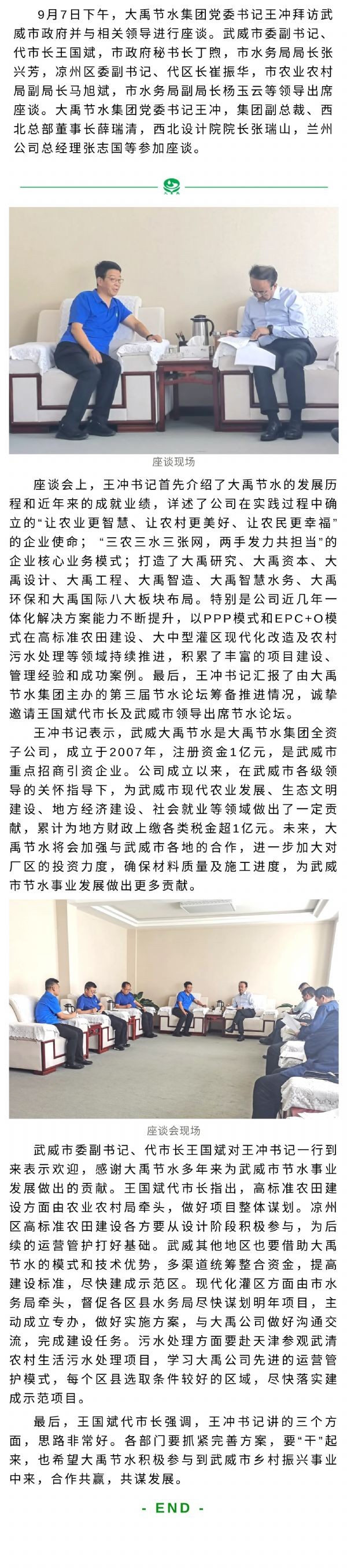 大禹動(dòng)態(tài)| 武威市代市長王國斌出席武威市政府與大禹節(jié)水集團(tuán)座談會(huì)