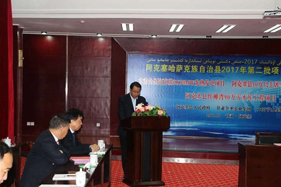 簽約儀式上,酒泉市副市長何效祖對阿克塞哈薩克族自治縣2017年第二批項目順利簽約表示祝賀,殷切希望所有項目都能在阿克塞這片熱土上,落地生根,茁壯成長。