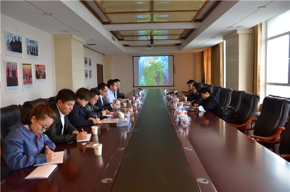 董事長王浩宇等公司領(lǐng)導(dǎo)與王海栗經(jīng)理、張子華經(jīng)理和禹果經(jīng)理在會議室討論