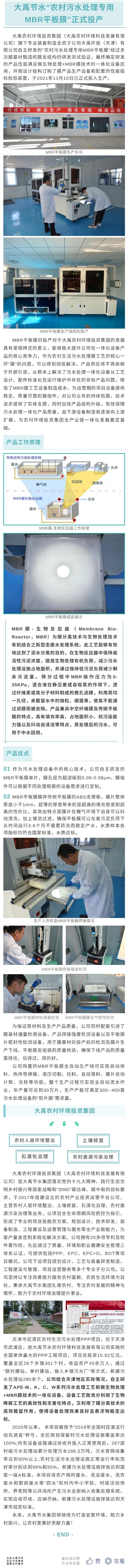 大禹發(fā)布| 大禹農(nóng)村環(huán)境投資集團自主研發(fā)“農(nóng)村污水處理專用MBR平板膜”正式投產(chǎn)