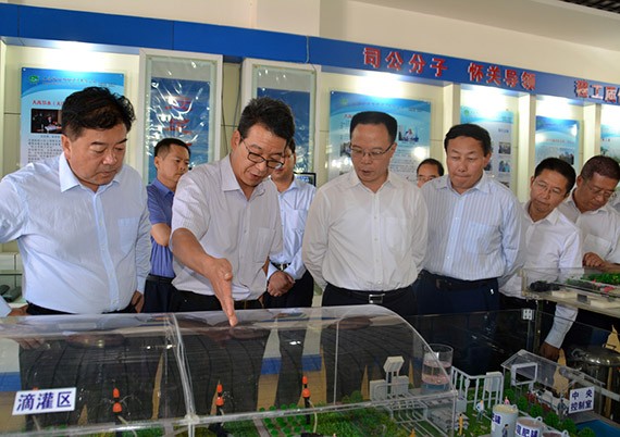 孫偉副書記一行首先來到大禹節(jié)水集團(tuán)公司綜合展廳,從公司發(fā)展歷程、基層黨建、榮譽(yù)資質(zhì)等方面對(duì)大禹節(jié)水集團(tuán)進(jìn)行了全面了解,王沖就公司基本情況進(jìn)行了匯報(bào)介紹。在聽到公司黨委被中共中央授予"全國(guó)先進(jìn)基層黨組織"光榮稱號(hào)時(shí),孫偉副書記對(duì)大禹節(jié)水集團(tuán)高度重視黨建工作,不斷完善基層黨組織體系建設(shè),增強(qiáng)基層黨組織的凝聚力、戰(zhàn)斗力方面取得的成績(jī)給予充分肯定。