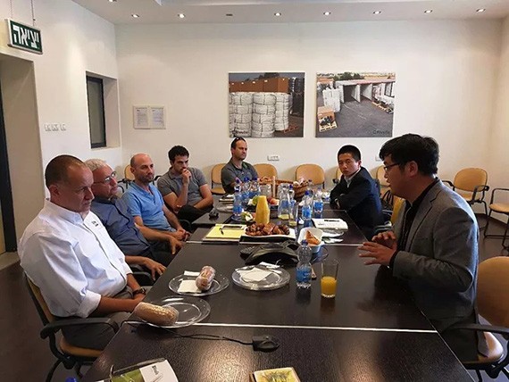 當(dāng)日下午,王浩宇一行現(xiàn)場考察了以色列瑞沃樂斯(Rivulis Irrigation)灌溉公司并進行了座談交流,瑞沃樂斯總裁Richard Klaphzla先生及副總裁Eliav Ashkenazy先生熱情接待了王浩宇董事長一行。雙方就各自企業(yè)的基本情況以及中以兩國節(jié)水灌溉技術(shù)與應(yīng)用等情況進行了深入交流座談,王浩宇指出,以色列瑞沃樂斯(Rivulis Irrigation)灌溉公司是以色列第二大灌溉公司,制造高性能滴灌和微噴灌產(chǎn)品,技術(shù)水平及實力很強;大禹節(jié)水集團作為中國節(jié)水灌溉行業(yè)龍頭企業(yè),擁有廣泛的市場,同時也具備資金、人才等最完備和豐富的資源,希望雙方能互相學(xué)習(xí),共同進步,加強合作,促進雙方互利共贏。