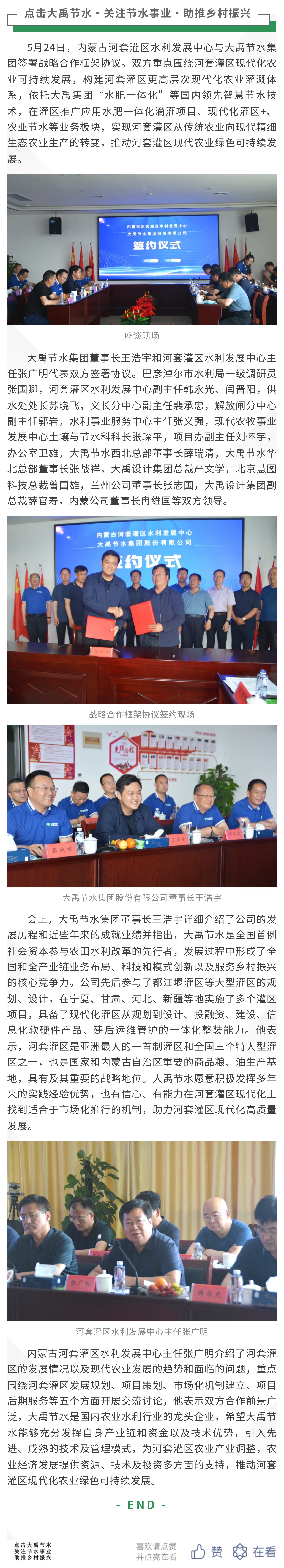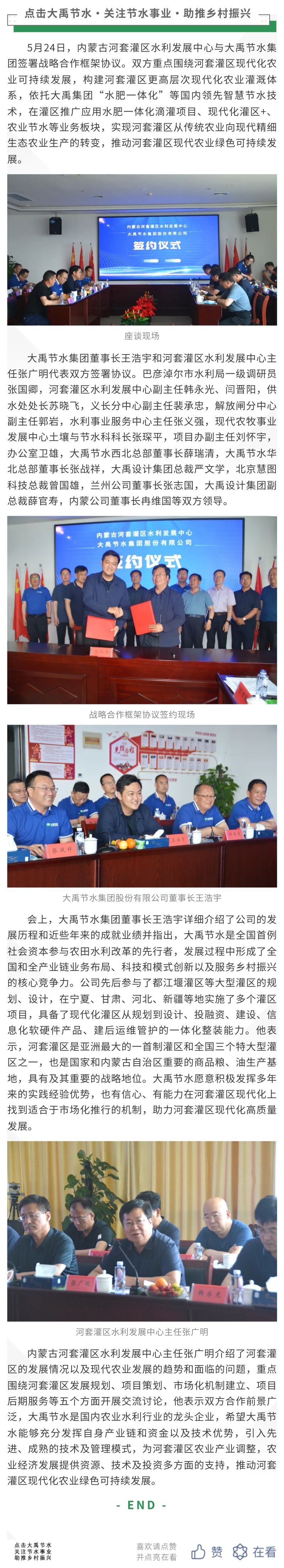 大禹動態(tài)| 內(nèi)蒙古河套灌區(qū)水利發(fā)展中心與大禹節(jié)水集團簽署戰(zhàn)略合作框架協(xié)議
