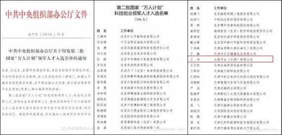 8月1日,中共中央組織部辦公廳印發(fā)《關(guān)于第二批國家"萬人計(jì)劃"領(lǐng)軍人才入選名單的通知》(組廳字〔2016〕37號(hào)),第二批國家"萬人計(jì)劃"領(lǐng)軍人才人選名單正式向全社會(huì)公布結(jié)果,共有620名科技創(chuàng)新領(lǐng)軍人才和336名科技創(chuàng)業(yè)領(lǐng)軍人才入選。大禹節(jié)水集團(tuán)公司副董事長、大禹節(jié)水(天津)有限公司董事長王沖成功入選國家"萬人計(jì)劃"領(lǐng)軍人才。