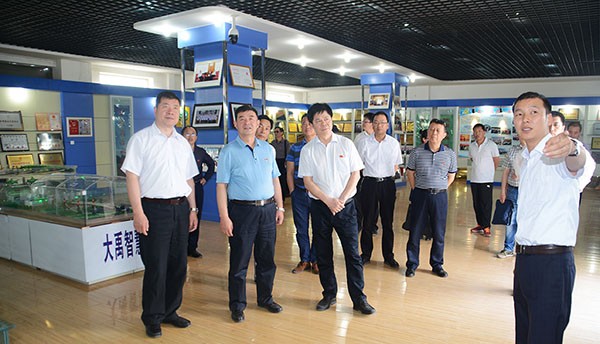 ▲調(diào)研組一行在大禹節(jié)水集團(tuán)公司綜合展廳考察調(diào)研