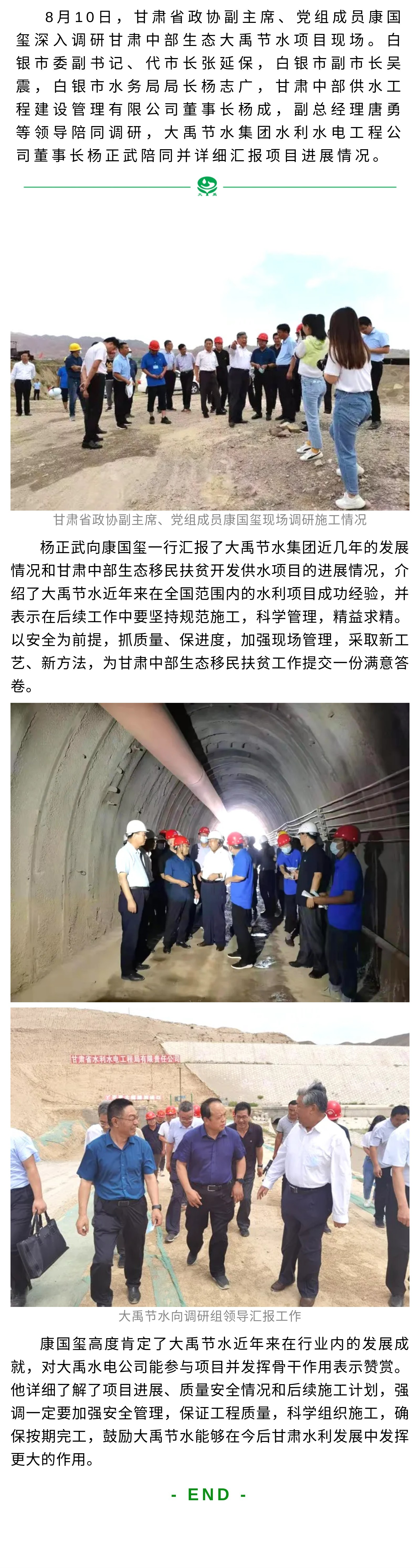 甘肅省政協(xié)副主席康國璽一行調(diào)研甘肅省中部生態(tài)項目大禹節(jié)水項目現(xiàn)場