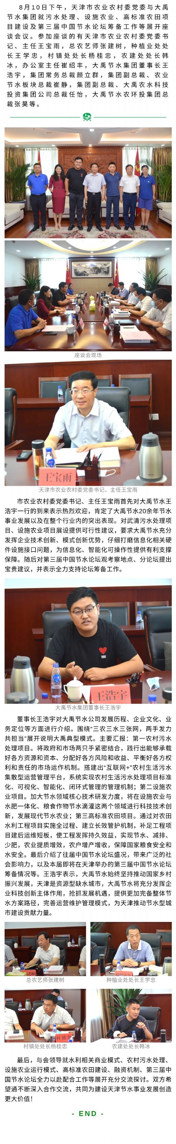 天津市農(nóng)委主任王寶雨等會見大禹節(jié)水董事長王浩宇一行