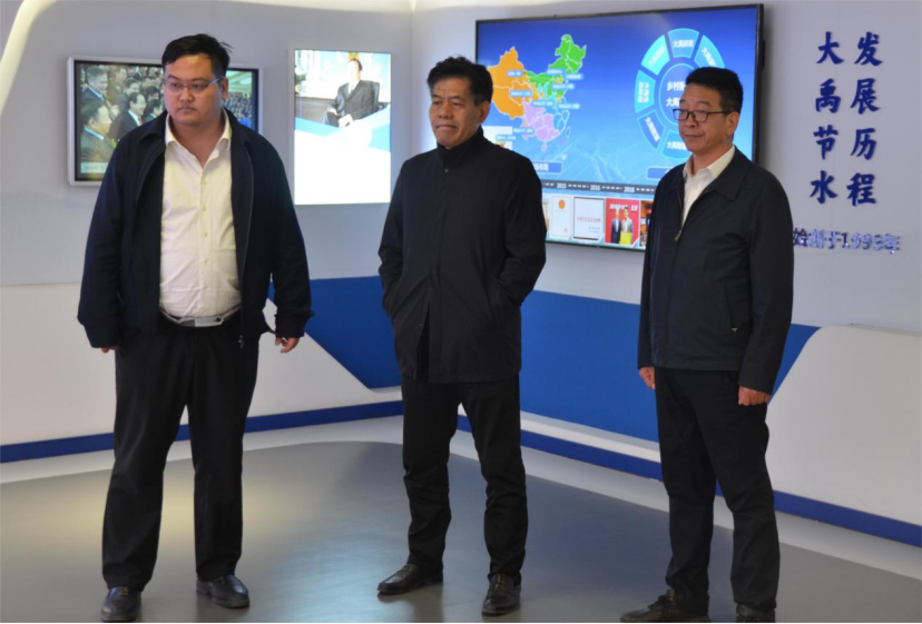 李文運書記一行先后考察調(diào)研了大禹節(jié)水天津文化展廳、運營調(diào)度中心、滴灌生產(chǎn)車間、灌區(qū)現(xiàn)代化管理模型、現(xiàn)代化罐區(qū)產(chǎn)品車間以及智能水表車間等多個區(qū)域,并觀看了大禹節(jié)水公司宣傳片。通過實地考察,全面了解了大禹節(jié)水集團(tuán)的發(fā)展歷程、技術(shù)實力以及業(yè)務(wù)范圍。