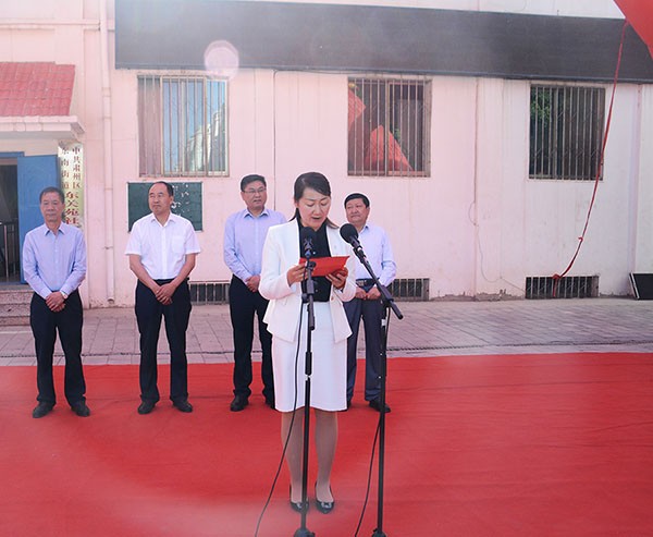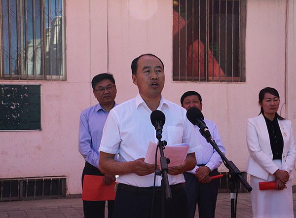 酒泉市委常委、統(tǒng)戰(zhàn)部長胡曉華宣布肅州區(qū)民族團結(jié)進步宣傳月幫扶暨民族團結(jié)進步示范社區(qū)創(chuàng)建活動正式啟動。