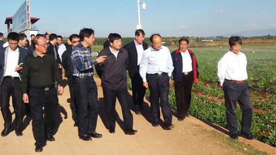11月5日下午,安徽省副省長方春明、水利廳廳長方志宏、省農(nóng)委主任孫正東等一行十人蒞臨陸良縣恨虎壩中型灌區(qū)創(chuàng)新機制試點項目區(qū)進行調(diào)研考察。云南省水利廳黨委書記劉剛、副廳長胡朝碧、資財處長曾毅、曲靖市常務(wù)副市長傅學(xué)賓等陪同調(diào)研。大禹節(jié)水集團總裁謝永生、財務(wù)總監(jiān)李福武、云南公司董事長賈林及安徽、江蘇片區(qū)有關(guān)負(fù)責(zé)人等參加調(diào)研。