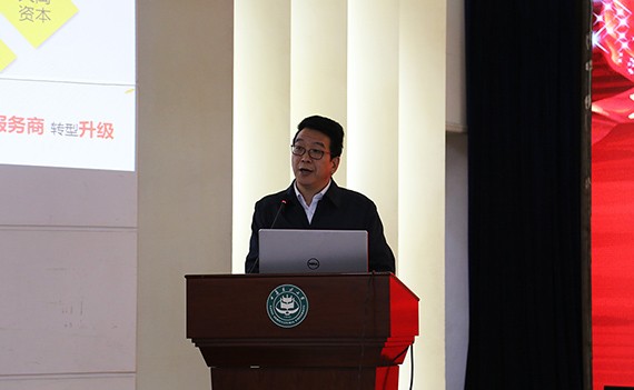 ▲ 大禹節(jié)水集團(tuán)公司黨委書記王沖向與會師生作專題報告