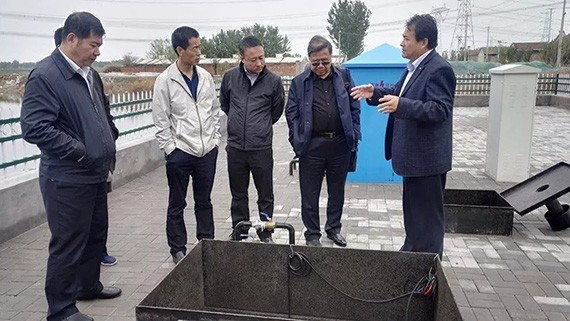 范世平董事長在聽取項目情況介紹后,對大禹節(jié)水集團在農村污水治理領域所做的探索和成績表示高度肯定,并就關心的污水處理費用、運營管理模式及項目建設費用等問題與謝永生總裁和項目技術人員進行交流。