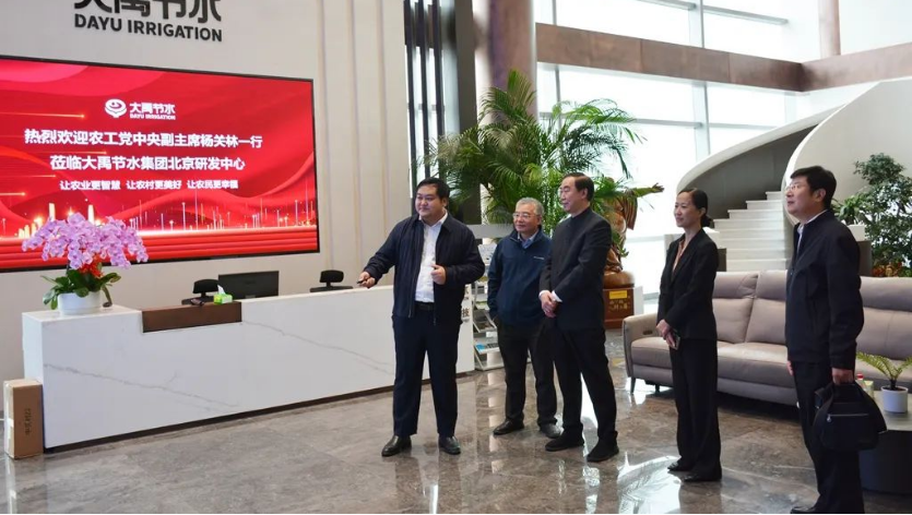 10月12日,全國人大教科文衛(wèi)委副主任委員、農(nóng)工黨中央專職副主席楊關(guān)林一行蒞臨大禹節(jié)水集團(tuán)北京研發(fā)中心調(diào)研指導(dǎo),農(nóng)工黨中央綠色發(fā)展工作委員會副主任、大禹節(jié)水集團(tuán)董事長王浩宇等陪同調(diào)研。此次調(diào)研重點(diǎn)了解了大禹節(jié)水集團(tuán)發(fā)展?fàn)顩r,并圍繞舉辦中國節(jié)水論壇和參與定點(diǎn)幫扶工作開展座談交流。