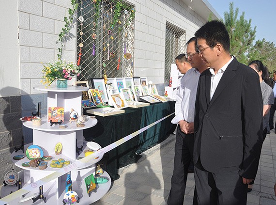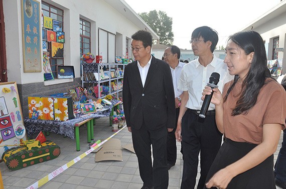 大禹節(jié)水集團黨委書記王沖一行的到來受到了學校領導、師生的熱烈歡迎,王沖一行首先來到少年宮特色作品展區(qū),觀看了學生們制作的各種各樣、豐富多彩的美術、手工作品,在校老師進行了細致的講解。