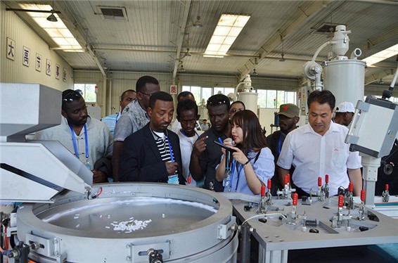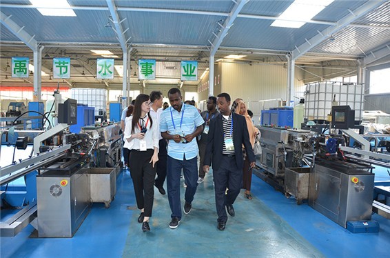 吉布提共和國官員一行在滴灌帶(管)車間參觀考察