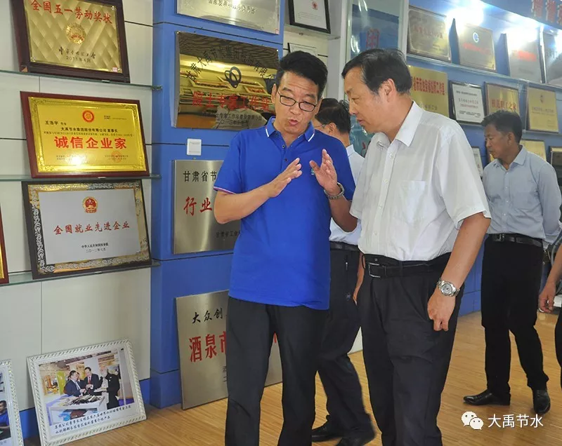 在公司綜合展廳,郝遠(yuǎn)一行從企業(yè)發(fā)展歷程、基層黨建、榮譽(yù)資質(zhì)等方面對(duì)大禹節(jié)水集團(tuán)進(jìn)行了全面了解,王沖就公司基本情況進(jìn)行了匯報(bào)介紹。郝遠(yuǎn)一行聽(tīng)取匯報(bào)后,特別是對(duì)公司黨委被中共中央授予"全國(guó)先進(jìn)基層黨組織"光榮稱(chēng)號(hào)表示高度贊揚(yáng);對(duì)高度重視黨建工作,不斷完善基層黨組織體系建設(shè),增強(qiáng)基層黨組織的凝聚力、戰(zhàn)斗力方面取得的成績(jī)給予充分肯定。