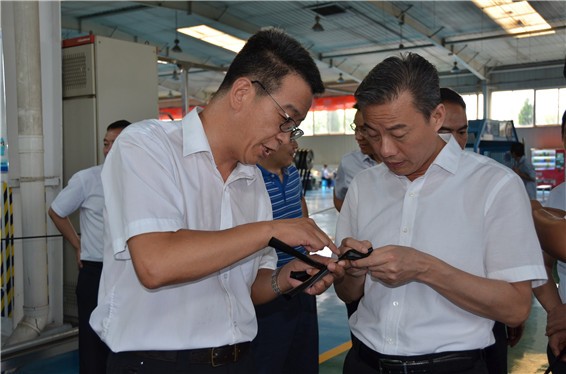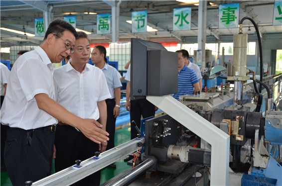 吳盛海局長(zhǎng)一行在大禹節(jié)水公司滴灌生產(chǎn)車(chē)間,了解公司產(chǎn)品研發(fā)、生產(chǎn)情況