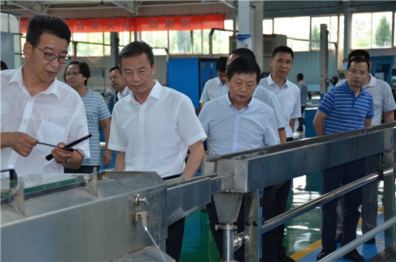 大禹節(jié)水集團(tuán)公司黨委書(shū)記、副董事長(zhǎng)王沖,董事長(zhǎng)王浩宇陪同吳盛海局長(zhǎng)一行在公司自主研發(fā)生產(chǎn)的自動(dòng)化施肥過(guò)濾器實(shí)驗(yàn)區(qū)參觀