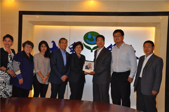 大禹節(jié)水(天津)有限公司董事長王沖等公司領導陪同柬埔寨蓋博拉斯美首相一行合影留念