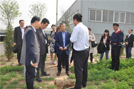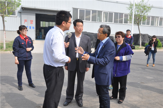 大禹節(jié)水(天津)有限公司董事長王沖陪同柬埔寨國家副首相、奉辛比克黨主席蓋博拉斯美一行在滴灌帶車間參觀考察