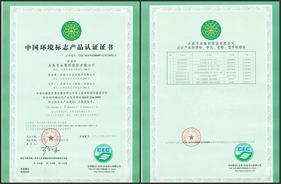自認證工作啟動以來,大禹節(jié)水集團組織酒泉、天津、武威三家子公司嚴格按照中國環(huán)境標志認證標準要求,建立了環(huán)境標志產品體系的程序文件及企業(yè)管理規(guī)范,梳理了相關工作流程。同時聘請專業(yè)咨詢老師對各公司管理人員進行了培訓,使各崗位管理人員熟知了認證標準,掌握了工作過程控制標準,確保實施控制質量。認證審核期間,中環(huán)聯合(北京)認證中心專家對三家公司進行了為期一周的現場審核,對于各公司生產、管理過程中存在的不足進行了指導整改,經中環(huán)聯合(北京)認證中心最終審核驗證后確認符合發(fā)證條件并頒發(fā)了相應的認證證書。