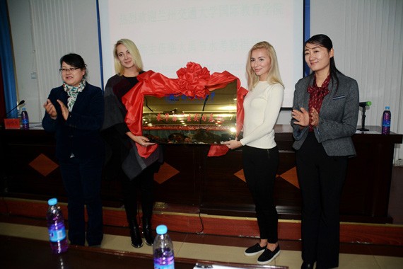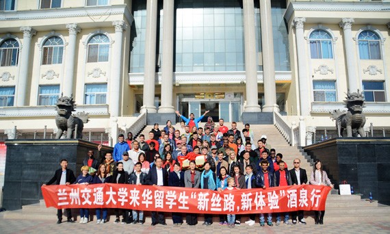 酒泉市肅州區(qū)人民政府副區(qū)長郭秀榮、蘭州交通大學國際教育學院院長張國錦共同為"蘭州交通大學國際教育學院-大禹節(jié)水集團來華留學生實習基地"揭牌,來自美國、烏克蘭、俄羅斯、意大利、西班牙、盧旺達、加納、老撾、泰國、哈薩克斯坦等20多個國家的70多位留學生共同見證實習基地揭牌。