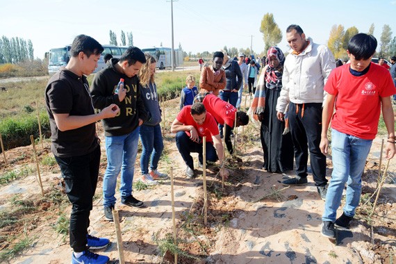 期間,蘭州交通大學國際教育學院留學生們還到大禹節(jié)水集團展廳、節(jié)水灌溉產品生產基地及黑枸杞種植基地現(xiàn)場參觀。大禹節(jié)水國際貿易部韓艷娜向留學生們詳細介紹了大禹節(jié)水集團公司及大禹黑枸生物科技有限公司基本情況。