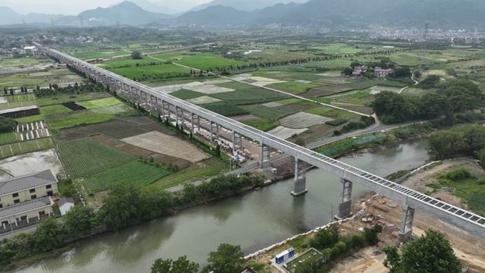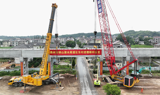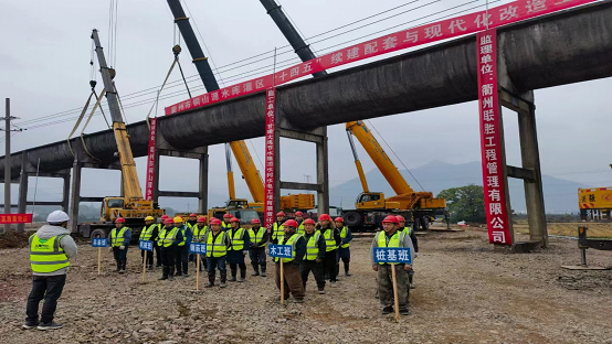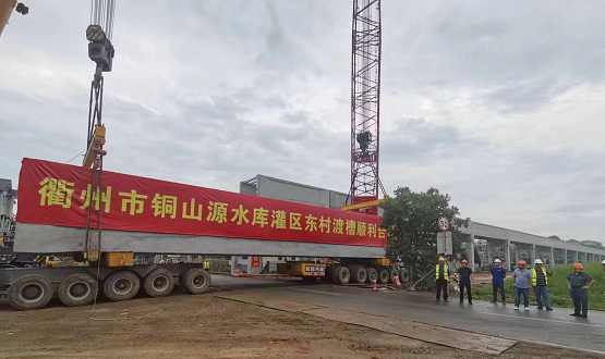 近日,由大禹節(jié)水集團(tuán)負(fù)責(zé)實(shí)施的浙江省衢州市銅山源水庫(kù)灌區(qū)“十四五”續(xù)建配套與現(xiàn)代化改造工程Ⅱ標(biāo)段——東村渡槽順利實(shí)現(xiàn)合龍,該渡槽工程是銅山源灌區(qū)東部供水的關(guān)鍵性工程, 是浙江省最大的渡槽工程項(xiàng)目,全長(zhǎng) 1332米,設(shè)計(jì)流量為 18.00m3 /s,加大流量為 21.6m3 /s。針對(duì)該工程建設(shè)工期緊、構(gòu)件單體量大,配件運(yùn)輸難度大,構(gòu)件安裝條件差等困難,大禹節(jié)水項(xiàng)目部及時(shí)優(yōu)化施工工藝,縮短預(yù)制構(gòu)件生產(chǎn)周期,提前規(guī)劃合理安排完成310噸大型構(gòu)建的運(yùn)輸,克服場(chǎng)地高差大、多日降雨等諸多不利環(huán)境難題,按期保質(zhì)保量完成吊裝施工。