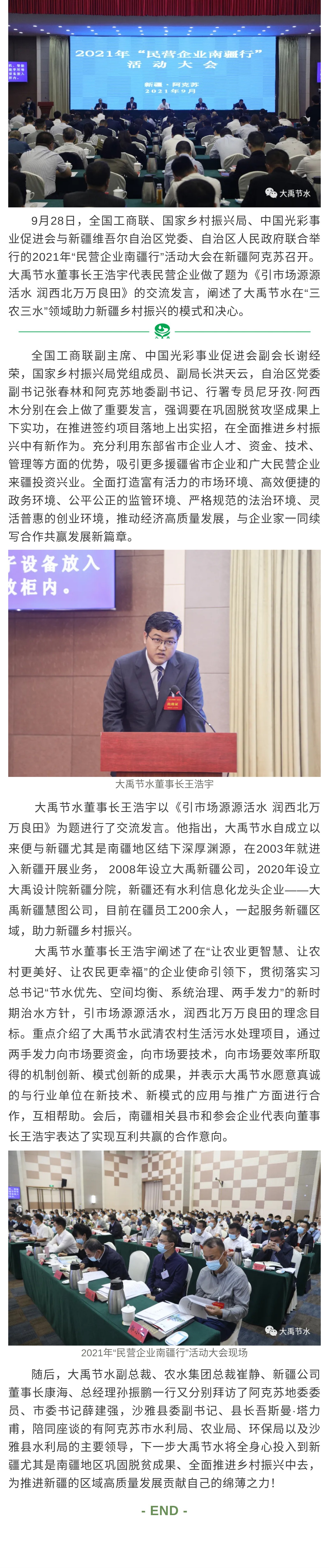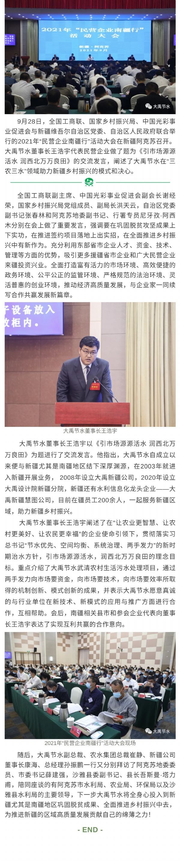 大禹動態(tài)| 2021年“民營企業(yè)南疆行”活動大會在新疆阿克蘇召開 大禹節(jié)水董事長王浩宇代表民營企業(yè)發(fā)聲