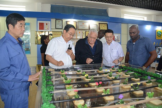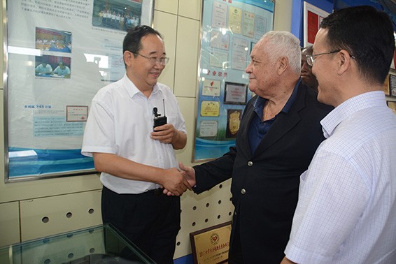 7月21日,牙買加交通礦業(yè)部部長麥克·亨利(Mr.Lester Michael Henry)、科學(xué)能源和技術(shù)部部長安德魯·惠特利(Mr.Andrew Wheatley)及隨行人員一行在酒鋼(集團)公司董事長陳春明、副董事長李忠科等陪同下到大禹節(jié)水集團參觀考察。大禹節(jié)水集團公司董事長王棟、總裁謝永生及集團公司在酒全體管理人員陪同考察。
