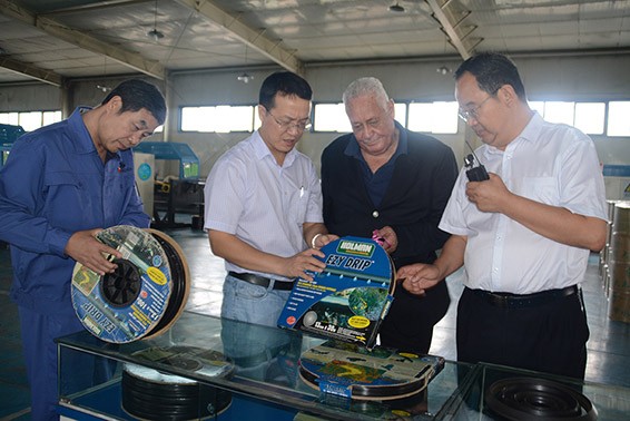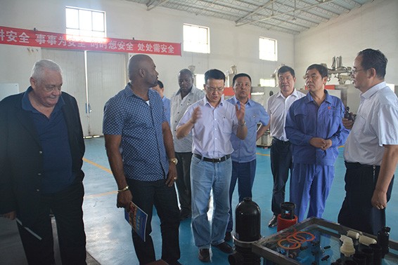 麥克·亨利部長及安德魯·惠特利部長一行首先來到大禹節(jié)水集團展廳,從公司發(fā)展歷程、企業(yè)文化、榮譽資質(zhì)、國際交流與考察等方面對大禹節(jié)水集團進行了全面了解,董事長王棟向麥克·亨利部長一行詳細(xì)介紹了大禹節(jié)水集團公司基本情況并重點介紹了公司實施的牙買加打井項目,得到了來訪領(lǐng)導(dǎo)充分肯定和一致稱贊。隨后,麥克·亨利部長及安德魯·惠特利部長一行深入公司滴灌車間、現(xiàn)代化灌溉設(shè)備裝備中心及管件車間實地考察。大禹節(jié)水集團公司董事長王棟等陪同領(lǐng)導(dǎo)向麥克·亨利部長及安德魯·惠特利部長一行詳細(xì)介紹了公司各類滴灌產(chǎn)品及配套設(shè)備設(shè)施的生產(chǎn)工藝、生產(chǎn)流程、產(chǎn)品銷售等情況。在公司各生產(chǎn)車間,麥克·亨利部長及安德魯·惠特利部長一行不時駐足仔細(xì)觀察和了解節(jié)水灌溉產(chǎn)品生產(chǎn)過程及工藝,并與公司陪同人員親切交流;在大禹節(jié)水現(xiàn)代化灌溉設(shè)備裝備中心,麥克·亨利部長及安德魯·惠特利部長一行現(xiàn)場考察了公司研發(fā)生產(chǎn)的各類全自動施肥過濾器產(chǎn)品及其生產(chǎn)工藝。