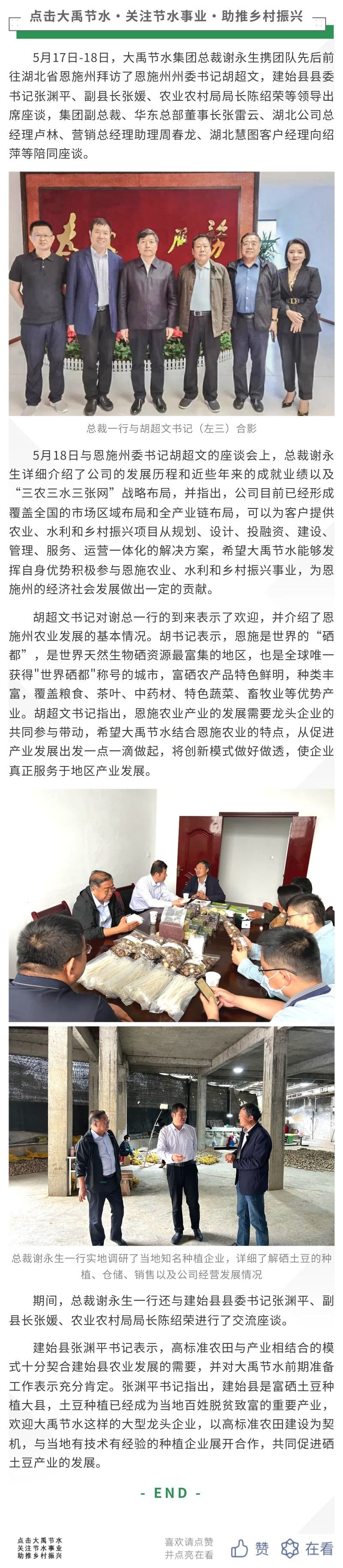 大禹動態(tài)| 湖北恩施州州委書記胡超文會見大禹節(jié)水總裁謝永生一行