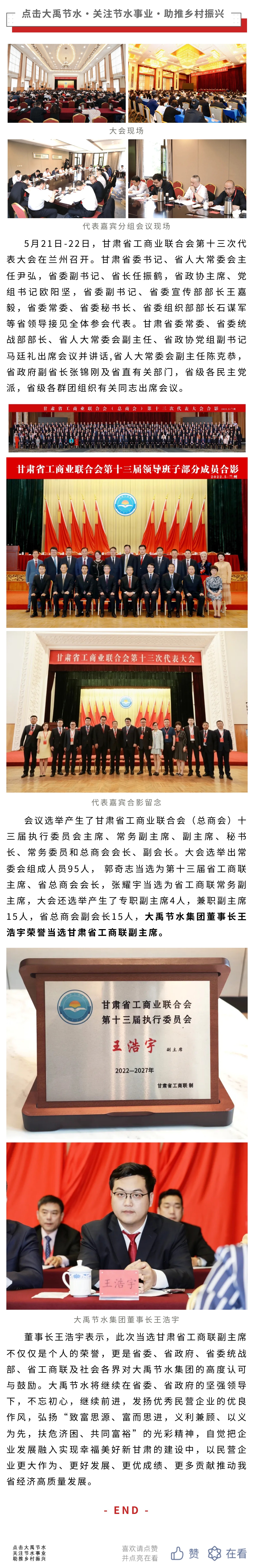 大禹榮譽(yù)| 大禹節(jié)水集團(tuán)董事長王浩宇榮譽(yù)當(dāng)選甘肅省工商聯(lián)副主席