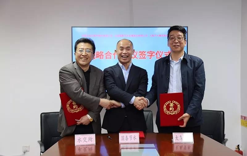 中國水權交易所股份有限公司是經國務院同意,由水利部和北京市政府聯(lián)合發(fā)起設立的國家級水權交易平臺。北京國泰節(jié)水發(fā)展股份有限公司是國內第一個以“合同節(jié)水管理”模式進行市場化運作的專業(yè)化節(jié)水公司;大禹節(jié)水集團股份有限公司是國內領先的生態(tài)環(huán)保領域投資、建設、運營服務商,致力于農業(yè)高效節(jié)水、合同節(jié)水、污水處理、供排水、水生態(tài)治理等業(yè)務的實踐和推廣。三方都是綠色發(fā)展理念的踐行者,生態(tài)文明建設和美麗中國建設的積極參與者,各自業(yè)務有很強的關聯(lián)性和互補性,合作潛力很大。