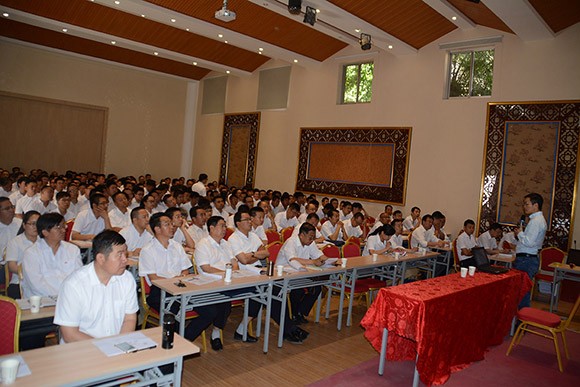 大禹節(jié)水集團公司中高層管理人員及各子公司董事長、總經(jīng)理及各業(yè)務(wù)單元有關(guān)人員等300余人齊聚酒泉參加了本次培訓(xùn)。