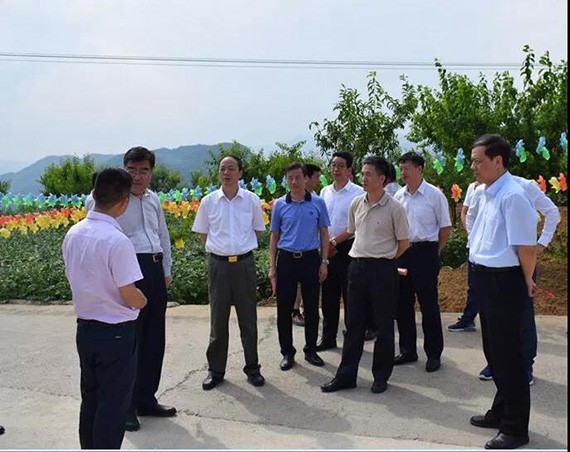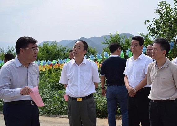 ▲水利部副部長田學斌、農(nóng)水司司長王愛國一行調(diào)研當?shù)亟?jīng)果林發(fā)展情況