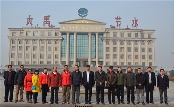 大禹節(jié)水集團(tuán)公司總裁謝永生、黑枸杞公司董事長劉偉芳、天津公司總經(jīng)理張學(xué)雙、常務(wù)副總經(jīng)理潘鈺及大禹研究院副院長戰(zhàn)國隆等陪同中信建設(shè)、農(nóng)業(yè)部外經(jīng)中心第二支部代表團(tuán)合影