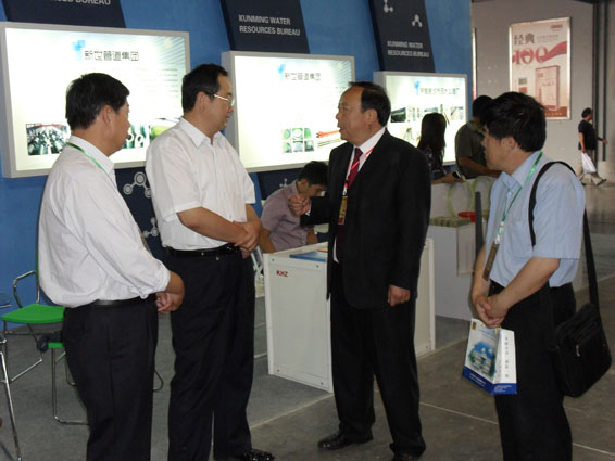 集團公司董事長王棟陪同參加博覽會的昆明市領(lǐng)導(dǎo)參觀公司“滴灌系統(tǒng)演示模型”
