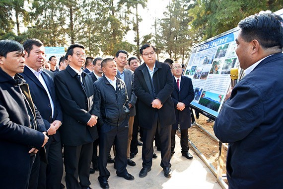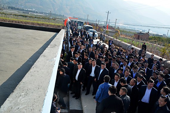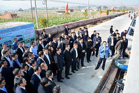 2月8日,大禹節(jié)水集團(tuán)公司多彩云南行業(yè)務(wù)考察學(xué)習(xí)團(tuán)現(xiàn)場(chǎng)考察了賓川縣東干渠6萬(wàn)畝高效節(jié)水灌溉項(xiàng)目建設(shè)情況。賓川縣人民政府副縣長(zhǎng)楊映紅現(xiàn)場(chǎng)向公司考察團(tuán)介紹了賓川縣高原特色農(nóng)業(yè)發(fā)展情況和全縣高效節(jié)水工作開(kāi)展情況;云南公司副總經(jīng)理張志國(guó)現(xiàn)場(chǎng)介紹了項(xiàng)目建設(shè)基本情況。集團(tuán)公司黨委書(shū)記王沖、董事長(zhǎng)王浩宇現(xiàn)場(chǎng)向大理州委常委、賓川縣委書(shū)記岳黎松,賓川縣人大常委會(huì)主任張成良及縣政協(xié)主席陳源等賓川縣四大班子領(lǐng)導(dǎo)匯報(bào)了項(xiàng)目建設(shè)情況。