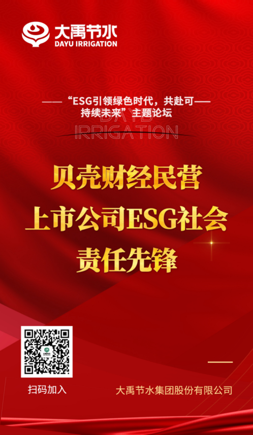 近日,新京報貝殼財經(jīng)召開夏季峰會“ESG引領綠色時代,共赴可持續(xù)未來”主題論壇,貝殼財經(jīng)聯(lián)合千龍網(wǎng)發(fā)布《貝殼財經(jīng)民營ESG先鋒上市公司》,共有24家企業(yè)入選,大禹節(jié)水成功入選“貝殼財經(jīng)民營上市公司ESG社會責任先鋒”。