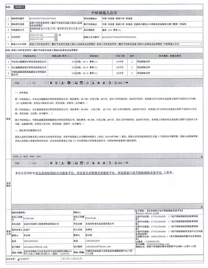 7月6日,大禹節(jié)水全資子公司甘肅水利水電工程公司參與張家口市懷來縣洋河二灌區(qū)節(jié)水綜合改造工程EPC總承包及運(yùn)營維護(hù)項(xiàng)目,預(yù)中標(biāo)金額31,445.48萬元。